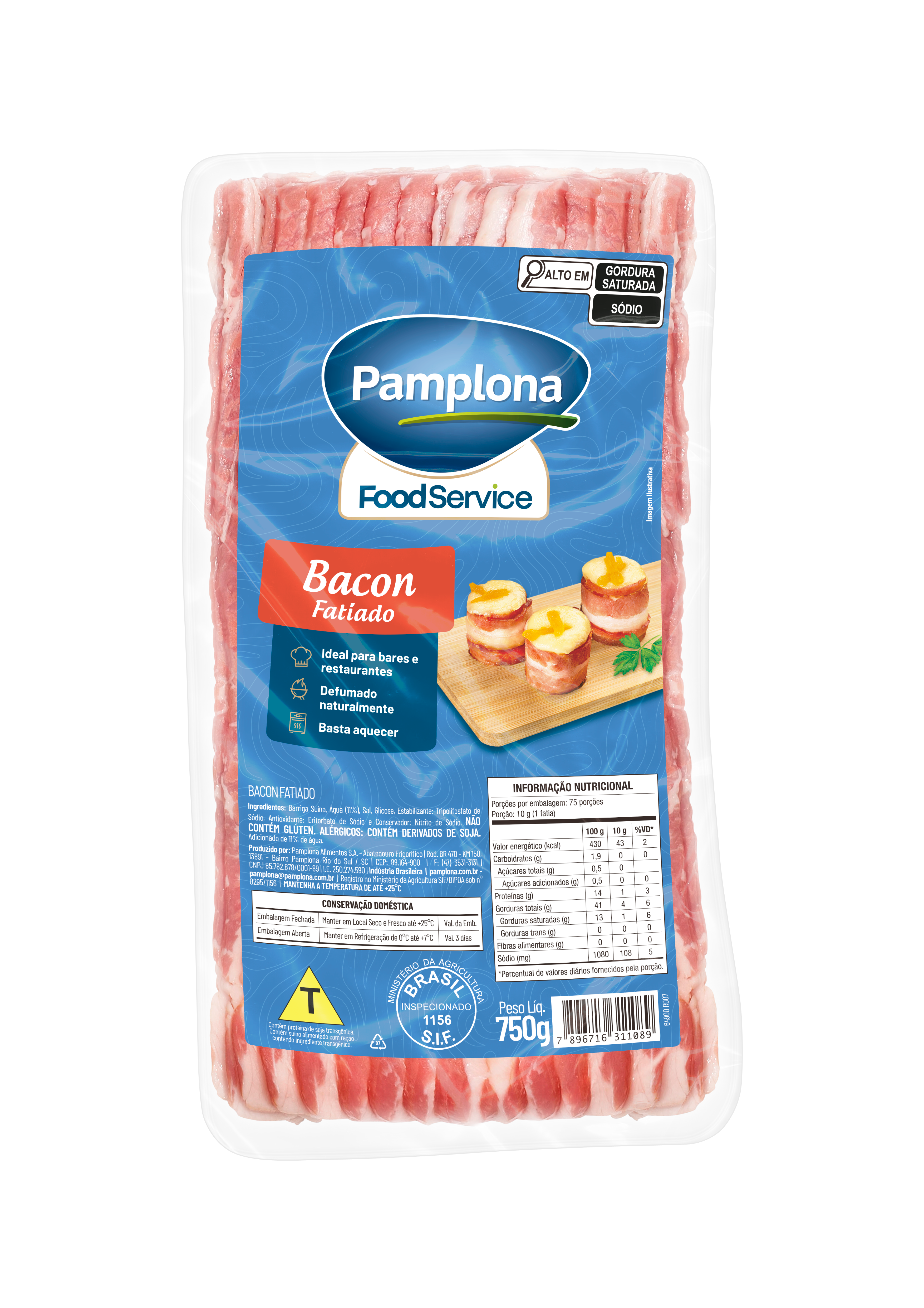 Food ServiceBacon Food Service Fatiado Resfriado 750g Pamplona - Caixa 7,5 Kg