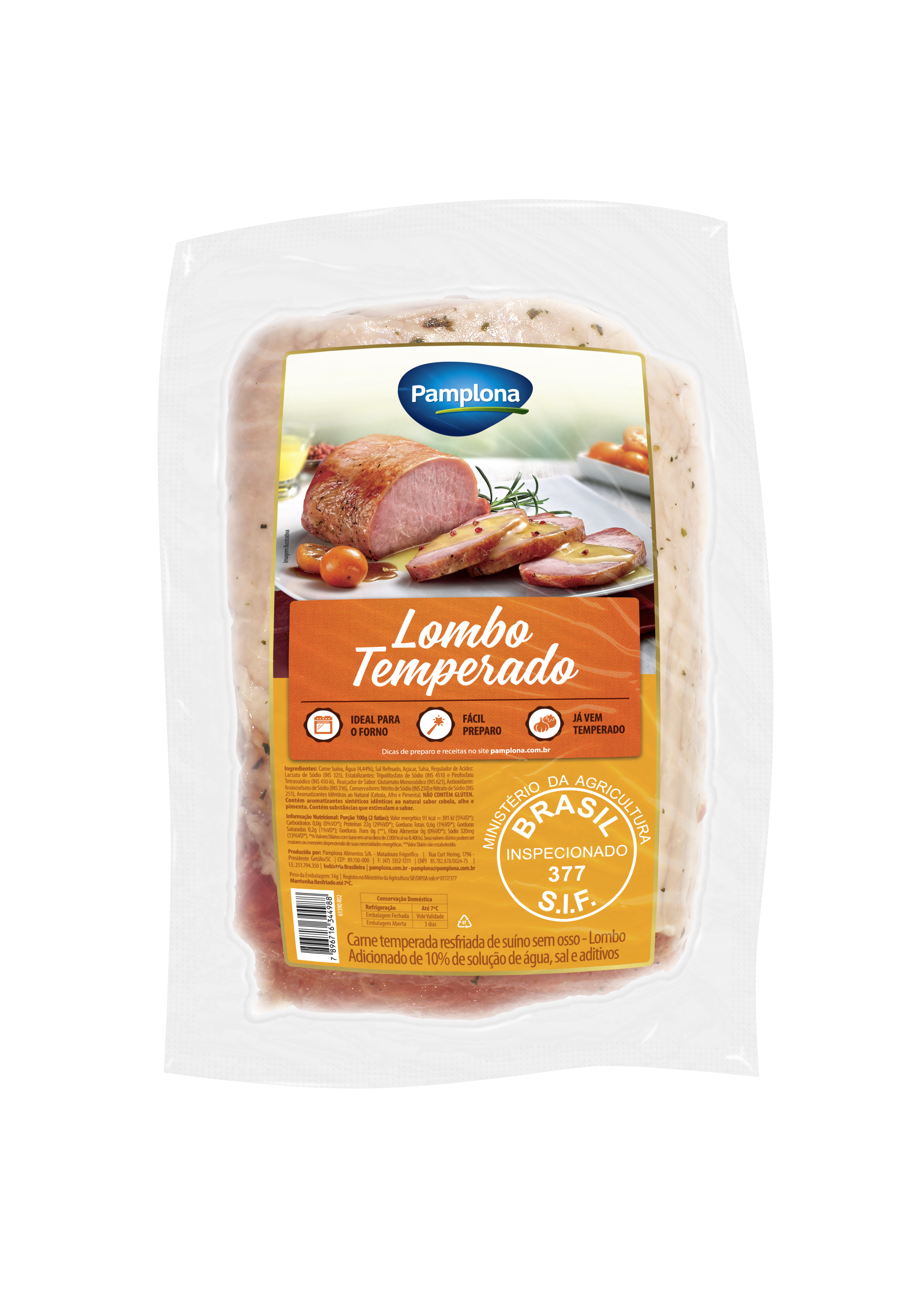 Lombo Suíno Temperado Pamplona: leve, suculento e já temperado. Ideal para assar, grelhar ou preparar na air fryer. Corte versátil com sabor e praticidade.