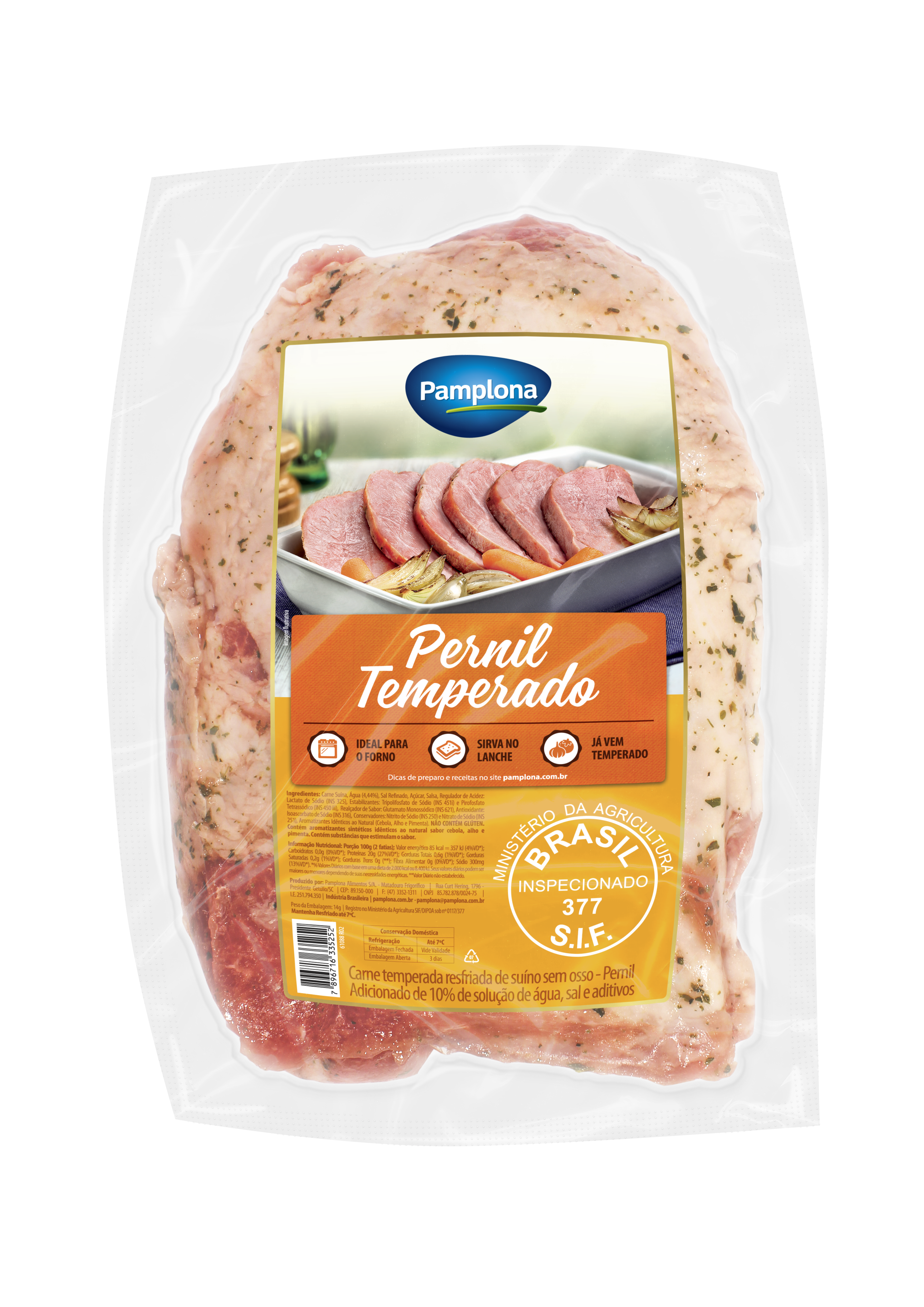 Pernil Suíno Sem Osso Temperado Pamplona: mais rendimento, maciez e sabor. Já temperado, ideal para assar, rechear ou porcionar. Prático e suculento!
